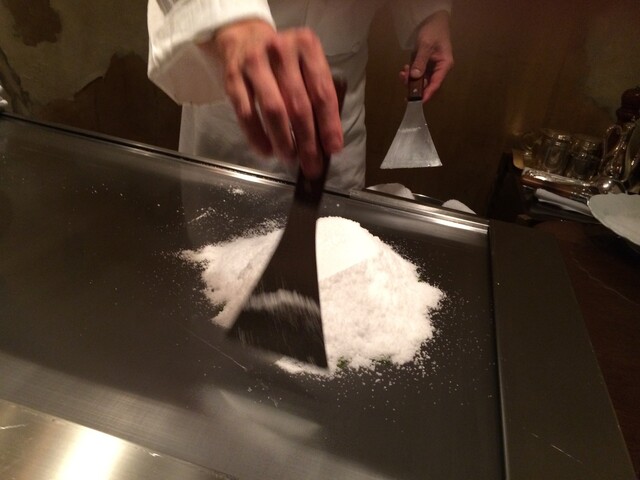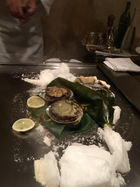 鮑は岩塩蒸しに