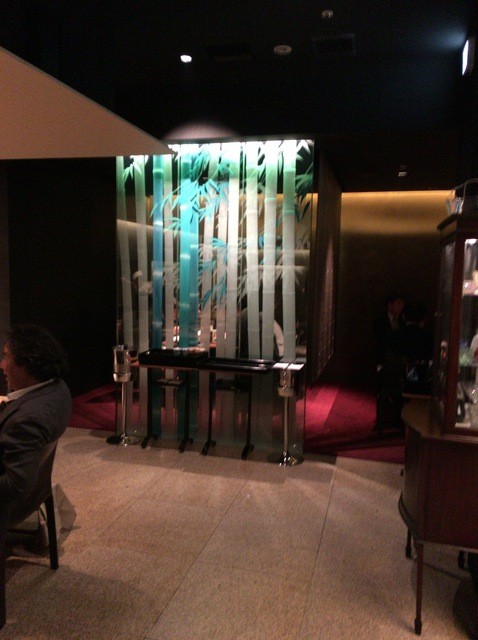 エントランスは、竹が描かれた大きなガラスで仕切られており幻想的な雰囲気。