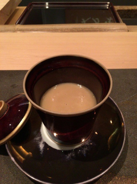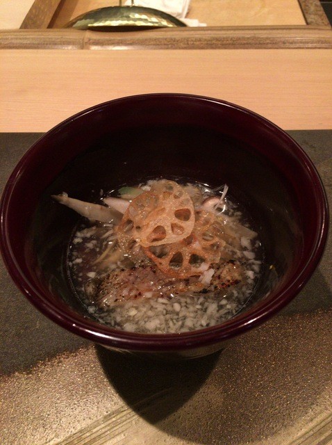 ズワイガニの先付けから始まり、焼物、スープと続きます。