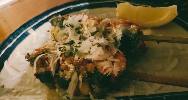 ・鰯の串焼 南仏風は1尾丸ごとかと思ったがカットされたものだった。トマトとチーズに負けない旨味を持った鰯だからこその組み合わせ。定番。