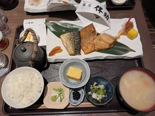 彩り三種干物定食(さば、縞ほっけ、赤魚)、大満足。