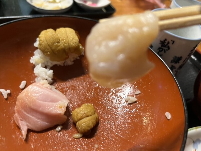 ウニはムラサキウニを使用しているとの事で身は淡白で上品な甘味を感じるウニでした。