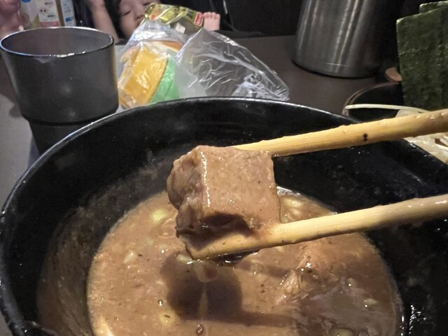 つけだれの中にゴロっとしたホロホロチャーシューにメンマが入っておりこれもまた美味しい。