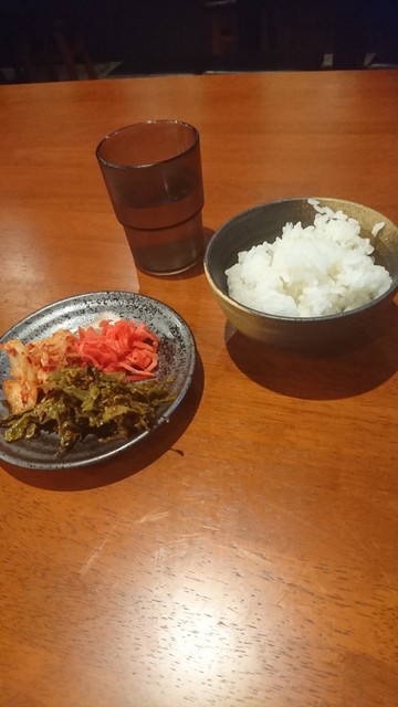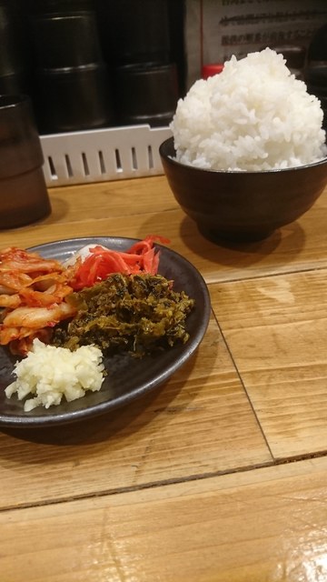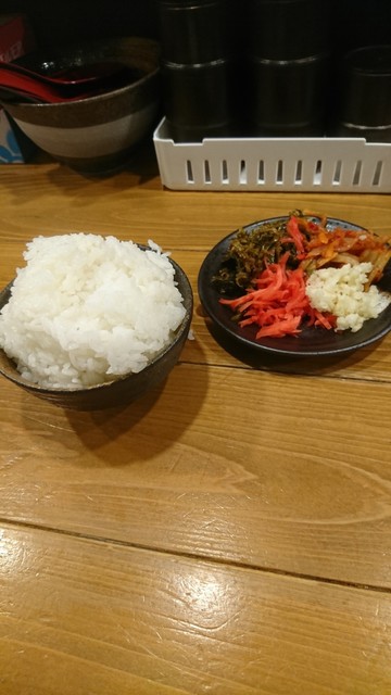 まずは無料のライスとキムチや高菜でラーメンを待ちます。