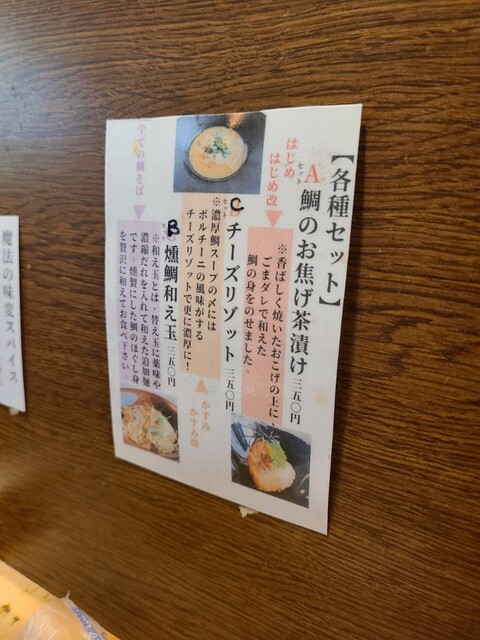普通の担々麺にあきた方、鯛そばファンの皆様是非珍しい担々鯛そばご賞味を