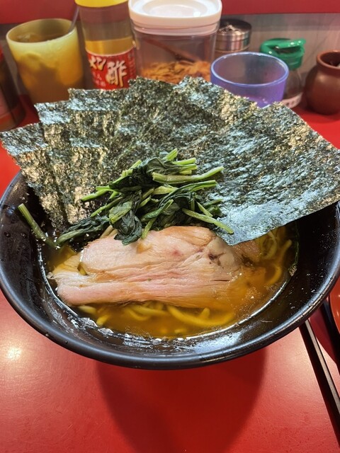 かため、アブラ多めで頼むと、これまた原価無視クラスの鶏油がキラキラしていました。家系チェーン店ではアブラ多めができない店もありましたが、取引先との信頼関係があるのでしょうね。