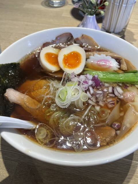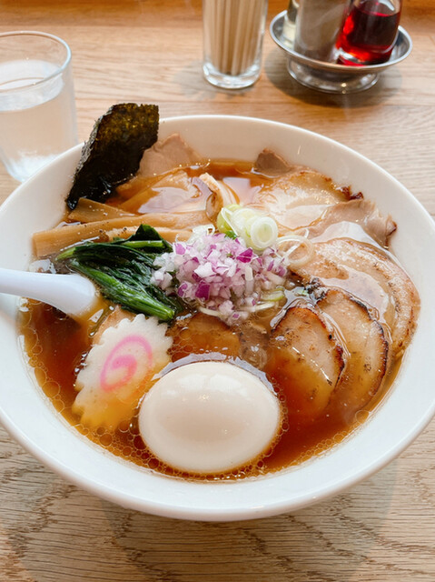 スープは鶏油の甘味を感じ、しょうゆの香りと相まってかなり美味しいです。チャーシューは大きめの盤面の肩ロースと脂身の少ないロースの2種類。肩ロースは適度な脂身で非常に柔らかいです。ロースは薫香が肉の美味しさを引き立て最高に美味しいです。ラーメンによく合います。