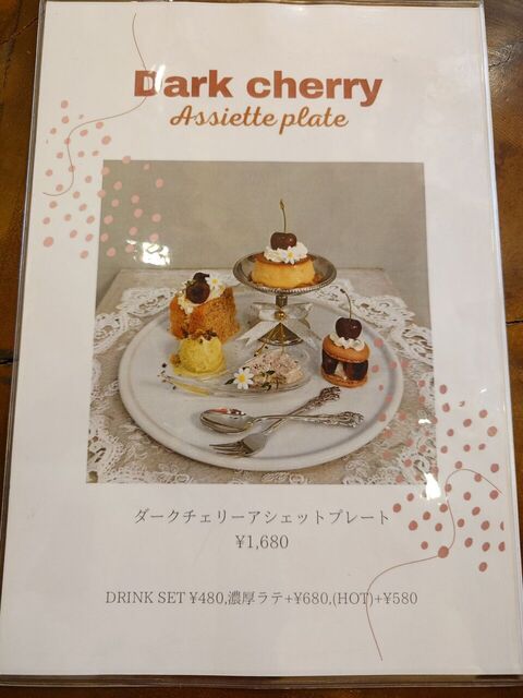 以前から行きたいと思っていた「monoGRAMstudiocafe」を友達が予約してくれました。茨木市駅近くで、商店街からちょっとだけ入ったところにあります。11時オープンの時間に合わせて予約してくれたので、最初に入店。シャビーホワイトな素敵な空間の写真を撮りまくりました。一人で来ても、お一人様席があるので心配ないです。そして、ここはわんこの入店もOKです。私達の少しあとに真っ白いかわいいワンちゃんをそれぞれ連れた3人組さんが、ワンちゃんの撮影会をしてました。そのワンちゃんたちがまたとてもかわいくて、おしゃれもしてて、みんが行くならドレスアップしないとだめですね。〈冬以外は、裸ん坊なので)私達2人は、ここの左側2席にすわりました。ちょっと離れた右側にはベビーカー入店したママさんととお友達。赤ちゃん連れにもやさしいお店です。プリンセスな気持ちにもなれそうな空間です。天井も凝ってます✨️そして、メニューも豊富です。かき氷もあります。予約必須のアフタヌーンティーはとても豪華✨️ほかにも写真を忘れましたが、ケーキも数種類あり、フードメニューのパスタも3種類ありました。夜メニュー(17〜23時)のパフェやミニショートケーキも素敵です。ドッグメニューもあります。かわいすぎてありえない〜!そして、お水から素敵なグラスです。それぞれのテーブルごとに違うグラスです。飲み物から来ました。紅茶の種類もたくさんあって、私はカシスアンドブルーベリーをチョイス。いい香りです。友だちは、ロゼ。ストロベリーの香りがしました。とても優雅なティーカップとスプーンです。そして、全てが揃いました。バラの位置からそれぞれの食器のセッティングは、マスターが微調整までしてくれます。優雅なアシェットデセールです。紅茶のシフォンケーキにピスタチオのアイスクリーム。透明の小皿にはブルーベリーのカッサータがのっています。メニュー写真とは違うんですがと前置きがあって(私はメニュー写真を覚えてませんでしたが)、これはチョコレートのテリーヌとクグロフです。とても濃厚なチョコレートのテリーヌです。クグロフのコーティングはレモンがきいてておいしい〜✨️そしてプリンがもうおいしすぎです。しっかりプリンでカラメルがほろ苦な大人味です。そして、どのダークチェリーも超大きくて食べごたえがあります。これから通い詰めたくなるスイーツと雰囲気でした。