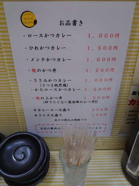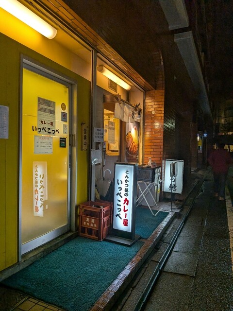 小雨の日曜日夜19:40位隣のとんかつ檍も並びなしでしたが、朝から上かつ丼食べるつもりだったので迷わずいっぺこっぺへ