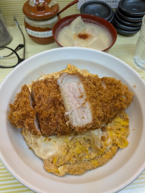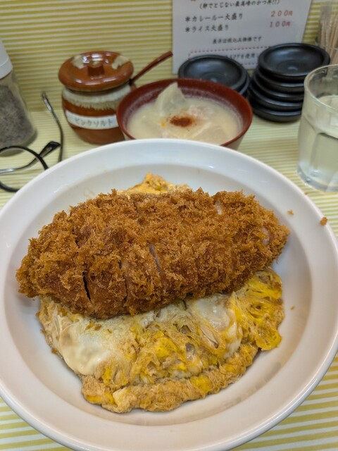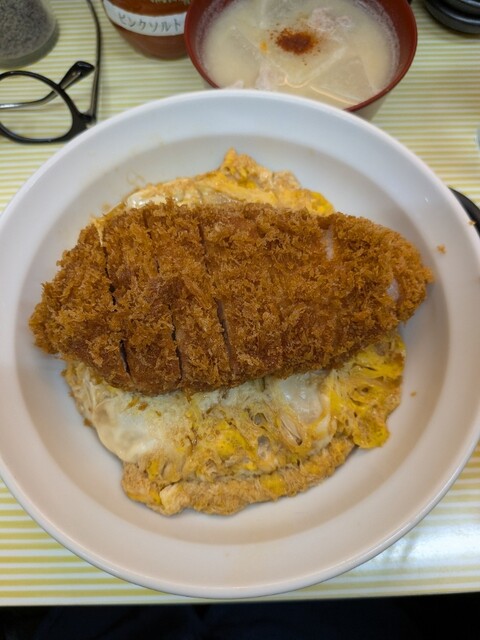 後客のかつ丼は玉子で閉じてあったので上だけとじないのかなと?