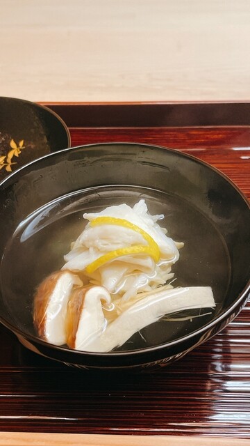 京都の料亭で学んだ繊細さ、つる幸で鍛えた技、片折で熟考を重ねた献立が生かされた料理に、北陸の豊かな大地と海の恵みが添えられる。