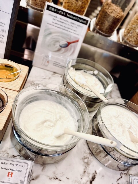 ヨーグルトは3種類もあって、シロップやはちみつの種類も沢山!