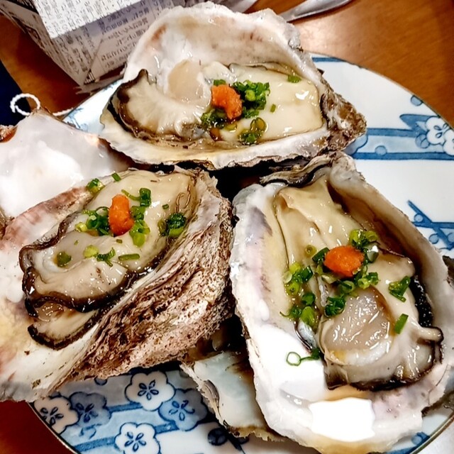 お店からのお祝いのカニに歓声して、巨大な牡蠣に度肝を抜かれ、お刺身で舌鼓、