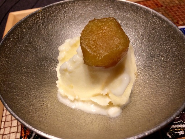 下には潰したずんだが敷かれており、生姜のアクセントが。