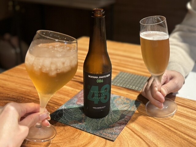 ドリンクは086のシリーズに新たに♯9が出来たということで、夫は♯9「瀬戸内ホワイトエール」、私は美容!?のため、トマトジュースに。
