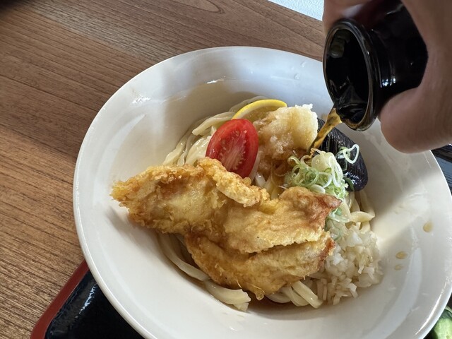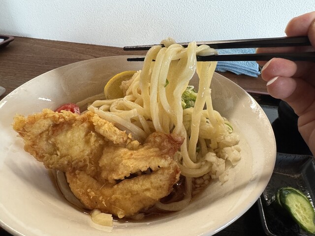 うどんつゆをかけていただきます、食べると麺にコシがあり美味しいです。