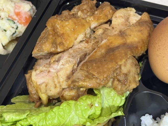 食べると肉の旨味が味わえる鶏肉料理は美味しい、付け合わせの総菜も旨い。(^_^)