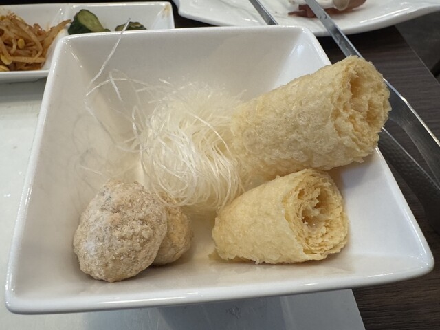 野菜・豚肉と続き、トウモロコシ麺をいただきます。