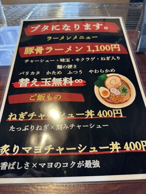 インスタを見ていると伊勢崎にラーメン屋のオープン情報が!調べると明日‼緊急で伺いました、博多豚骨ラーメン ブタになります。さんです。