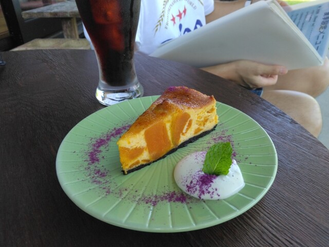 珈琲とケーキの味も然る事ながら神の島、久高島を眺望しながらのカフェタイムは格別な時間でした。