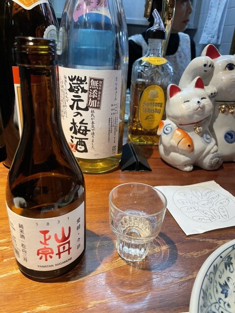 松山の百名店わダメもとで夕刻電話したら一人ならOKと。愛媛随一の繁華街大街道を急ぐ。お店は商店街から一本入って落ち着いた店構え。カウンターと数席の小上がりを大将と女将さんの二人で切り盛り、なかなかいい雰囲気。付け出しから美味しく期待が高まります。