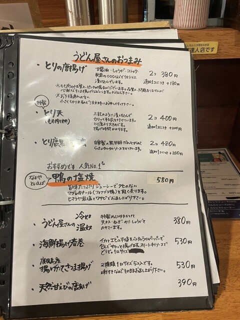 年末の週末だったからか、並ばずに入店。つまみの鳥の唐揚げで感動し南蛮も追加オーダー。うどんは時間がかかるとの話もあり、じっくり焼酎呑めました。うどんはのどごしが非常によくしっかりしたコシにだしの効いたつけだれとの相性抜群◎