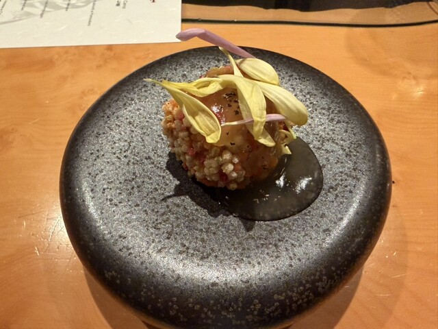 お店の名前は「小さな劇場」の意味とのこと、お店の雰囲気も料理もディテールまで拘りが感じられて、さすがは人気店です。好みに合わせ料理にマッチしたおすすめワインのセンスもよし。今回はテーブル席でしたが、次回は少人数でカウンター席でシェフと会話しながら頂きたいと思います。