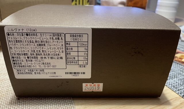 明日の嫁さんの誕生日ケーキ解凍時間があるので本日指定で配送して頂きました。丁寧な梱包で崩れず良かったです。チョコとベリー好きな嫁さんにニルヴァナをセレクト。喜んでくれたらいいんやけどなぁ。美味しいのは間違いないので安心しております。早く明日にならんかなぁ。