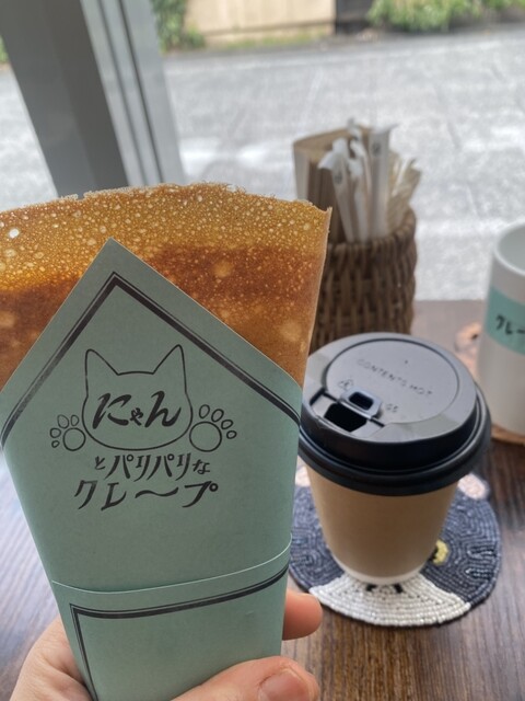 最近のもちもちクレープではなく、薄くてパリパリのクレープ。カスタードも控えめでクレープの味を楽しめました!有機コーヒーとも相性良くとっても美味しかったです。店内も猫好きにはたまらないオシャレな空間でした。