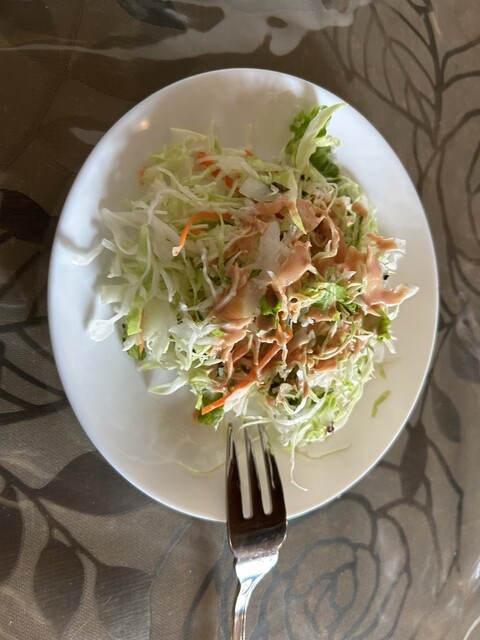 水でも飲んで待とうかなと水を飲んでみるとミントウォーター(かなりミントが濃厚)でした、5分位してサラダ、次にナン2枚とニハリが先にだされます。