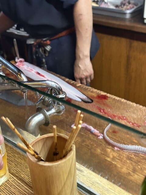 目の前で捌いてるところを観させていただきました。