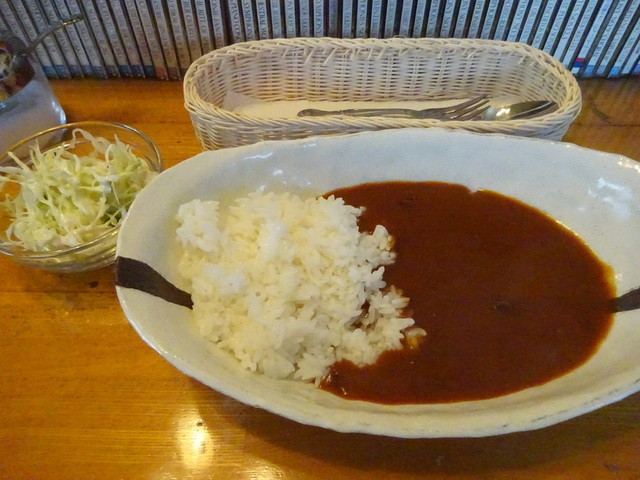 最初にカレーの登場、ビーフカレーですね、食べると汗が出ます。