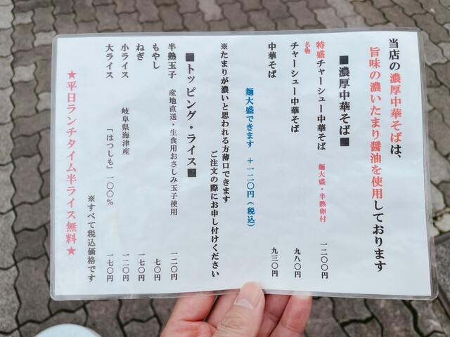 看板メニューの「濃厚中華そば」は、とにかく一口目のインパクトが強い。