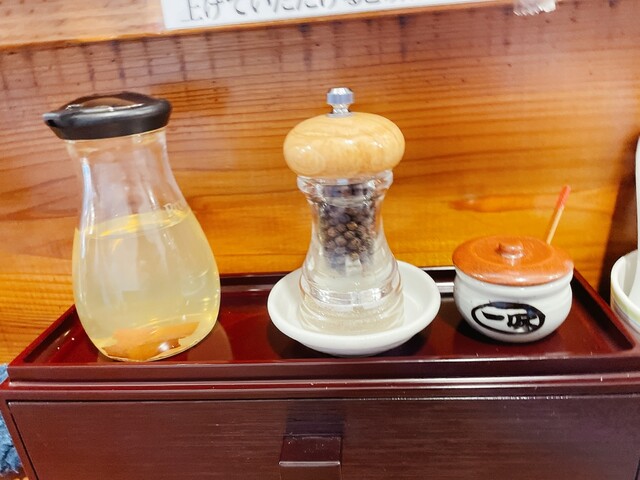 卓上には昆布酢やブラックペッパー、一味が用意されていて、味変を楽しむこともできます。