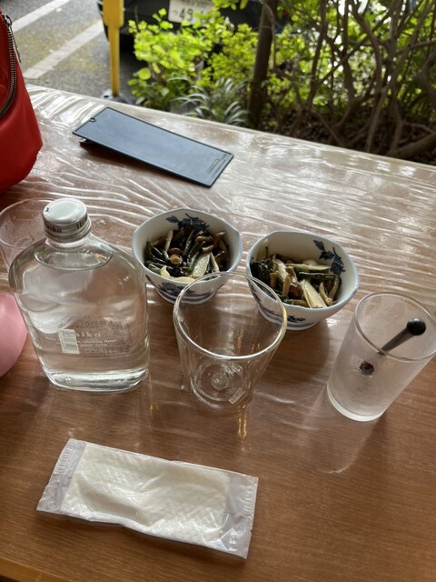 てから~w いつものいいちこボトルを蕎麦