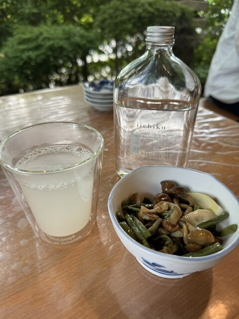 いいちこボトルを蕎麦湯割で、山菜料理と蕎麦揚げをアテに♪