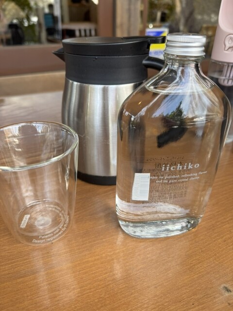いいちこの300mlボトルを蕎麦湯(無料)