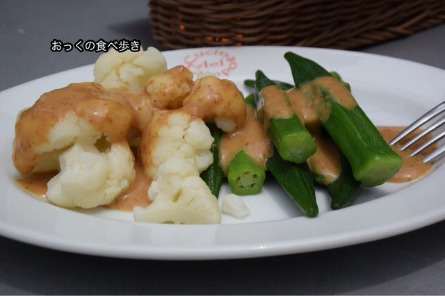 サラダバーでオクラとカリフラワー
