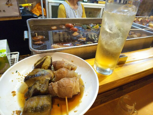 ハイボール&うずら豚&茄子