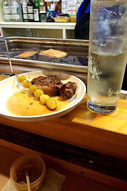ハイボール、ふき、いわしつくね