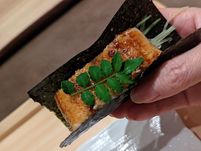 宮崎鰻胡瓜千切り木の芽 有明一番海苔で巻いて