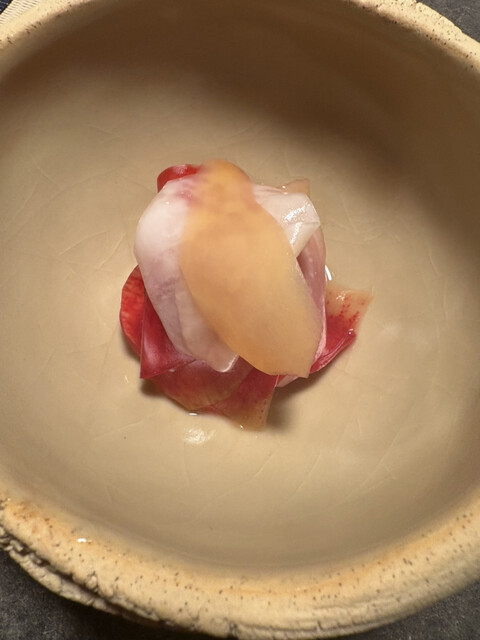 宮津の鰤 わけぎ かぶらの梅酢のなます