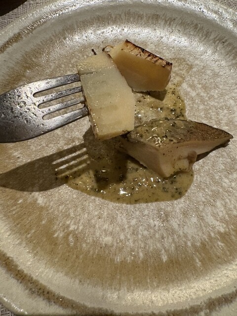 1発目から期待高まります❣️桜島大根と湧水のコンソメは透き通ってる