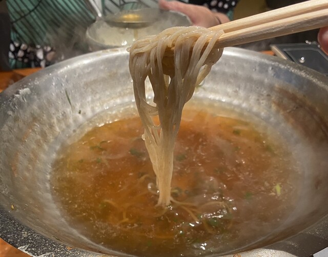 薄切りの鴨、ツミレ、九条ネギの細切山盛り