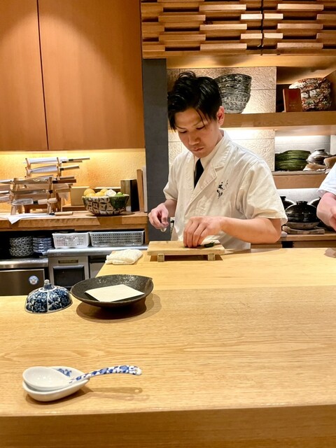 シンプルに食事の質がとても高い!パフォーマンスや調理工程が見えない個室や座敷の人気が高いのも納得です。お話の中でカフェイン無しの対応も可能とかなんとか…!