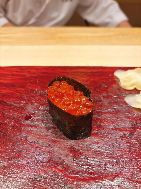 握りはコハダ、鯛、烏賊、中トロ、ミル貝、雲丹、車海老、イクラ、鯵、干瓢巻き、お椀でfinish