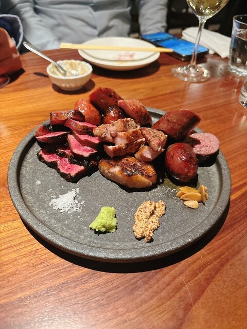 フードも充実してて牛豚、ジビエ、自家製ソーセージ等をグラム単位で選んで焼いて戴くシステム