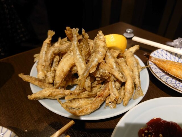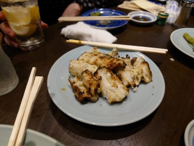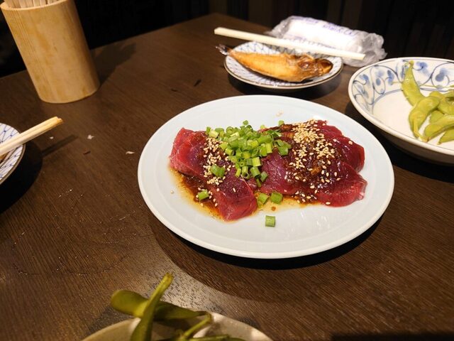 のどぐろ一夜干しに枝豆ワカサギのから揚げ鯨ベーコン鯨の刺身牡蠣の味噌バター炒め開始から次から次へとそそる料理がテーブルに運ばれてきます。どれも味は一級品でとにかく絶品です!