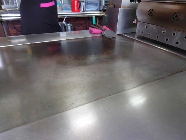 店内に入ると鉄板前かテーブル席かを聞かれましたが、いつも通り鉄板前に陣取りました。