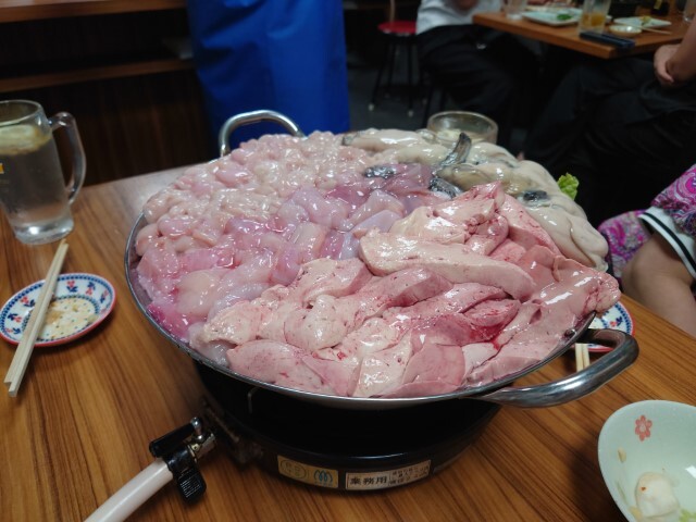 約半年ぶりに豊田屋さんへ。季節柄夏はしりの美味しいものを味わえると思っていて冬、春の美味しいものは食べられないと思って伺いましたが、、、。良い意味で裏切られました。初夏の美味しいものといえば、魚介だと「ホヤ」「かつお」「ほたるいか」ですが、漬けたての「らっきょう」もあり先ずは初夏を満喫。定番のつぶ貝の串焼きも相変わらず絶品でその後は、、、。なんと「白子」「カキ」の鍋がまだあるという事で、、、。鍋に突入。その後は怒涛の鍋攻撃となり、「白子」「カキ」鍋から始まり肉系に突入。牛肉、勝つ煮、鴨鍋と絶品美味い物ラッシュ。途中カキフライも愉しみつつ、お酒は生から黄色、そして濁り酒サワーとたっぷり飲んで愉しみました。最後は鴨鍋にきしめんを入れて〆という事で、季節の変わり目で冬、春と初夏の3つの季節の美味いものを堪能しました。相変わらずの美味しさで最高のひと時でした。ごちそうさまでした!
